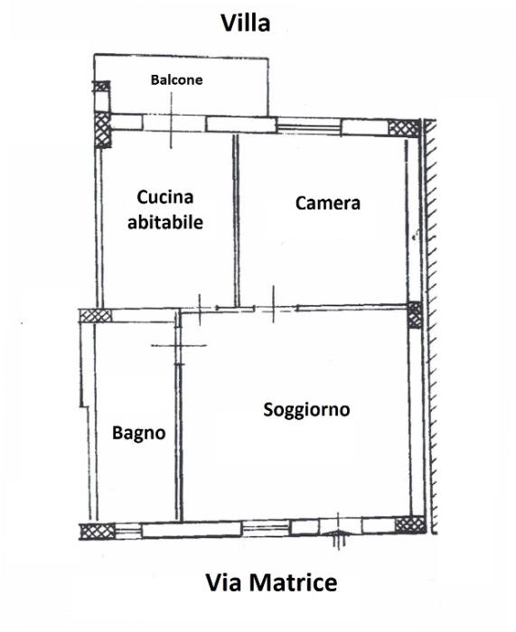 L'appartamento ha l'ingresso indipendente a piano terra ed esposizione principale al piano primo con affaccio su villa alberata comunale.