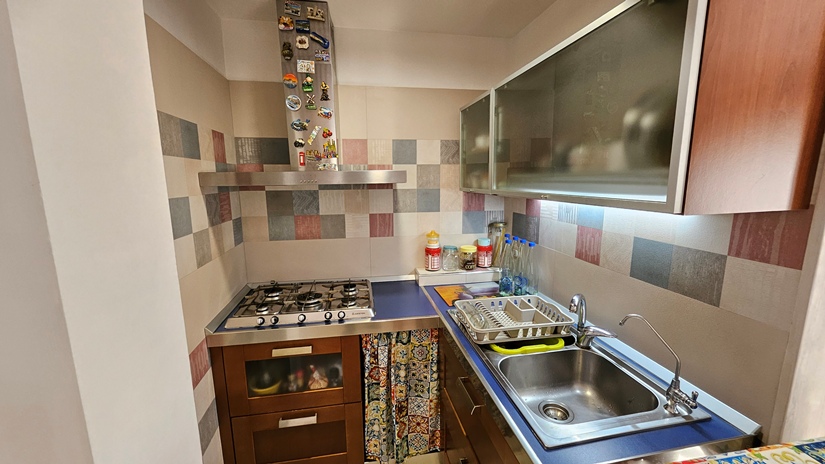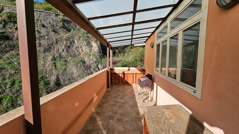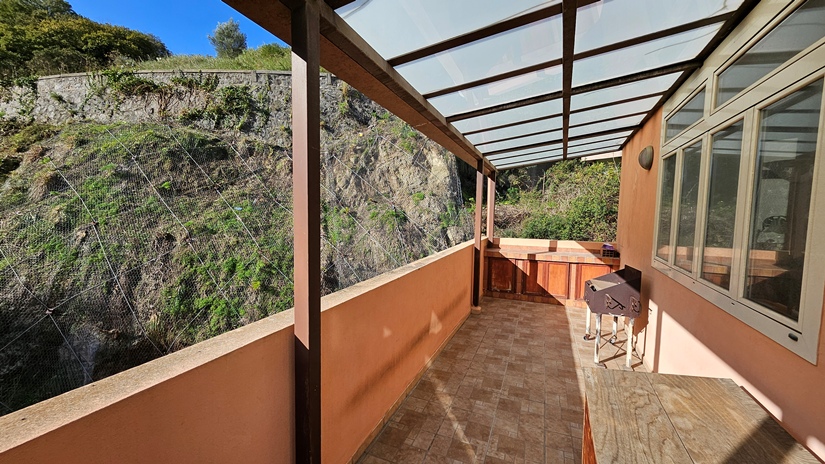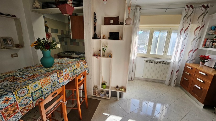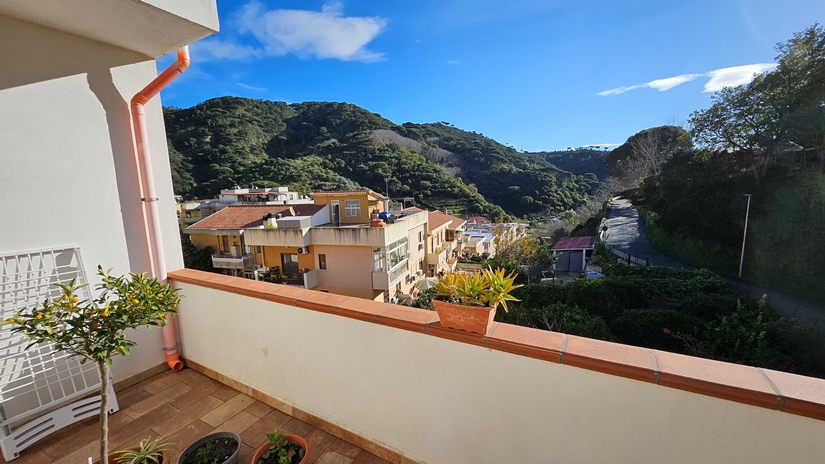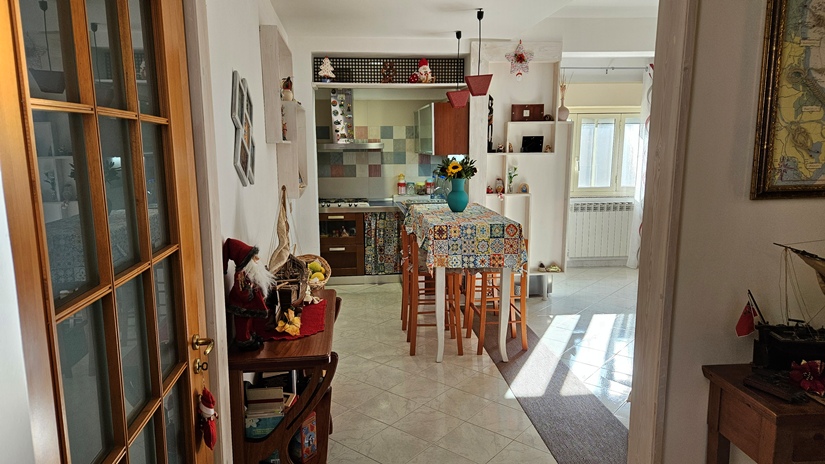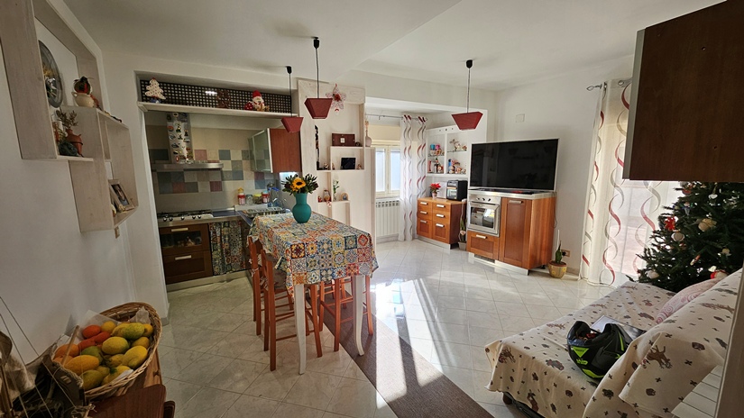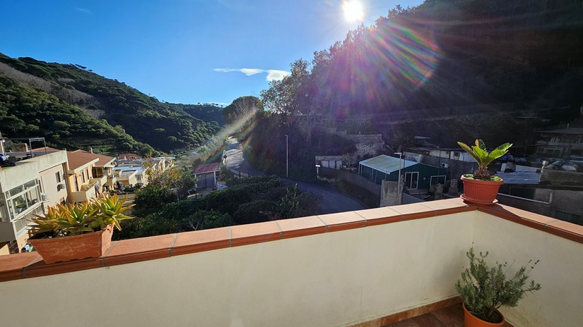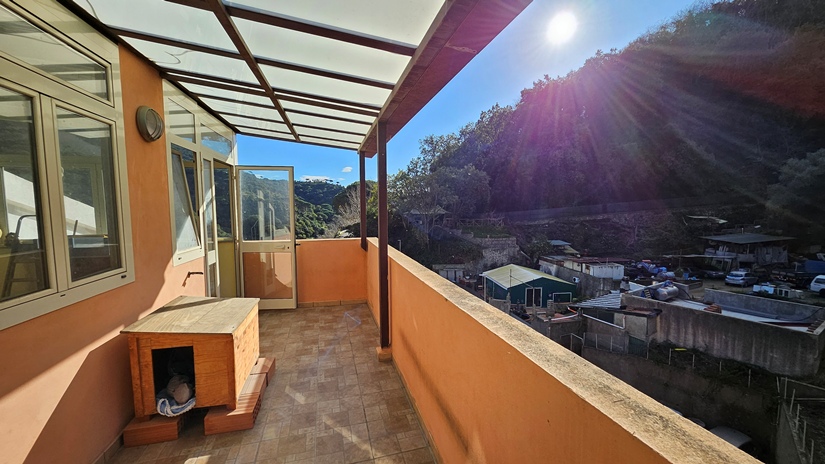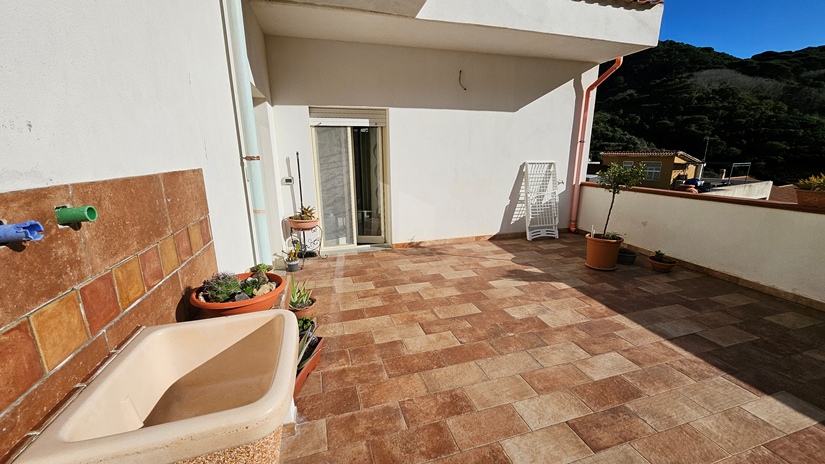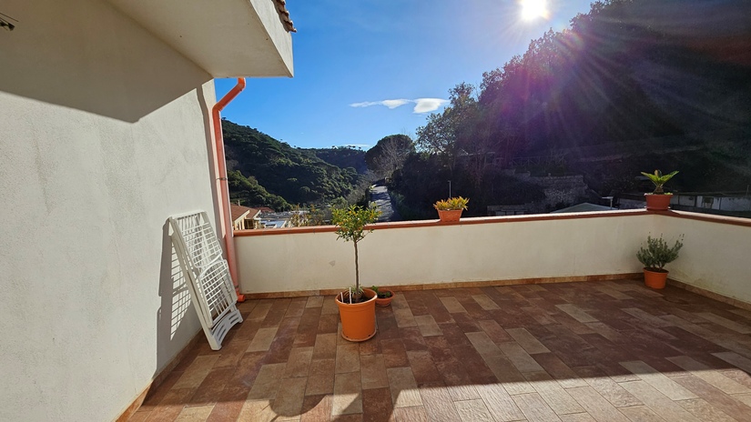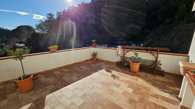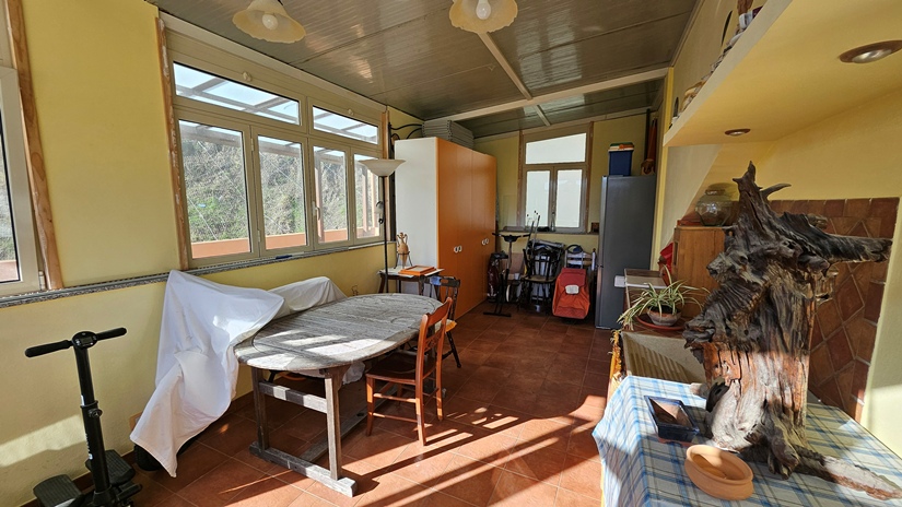 L'abitazione principale, in buone condizioni e pronta per essere abitata da subito, è così distribuita: ingresso su luminoso soggiorno e grande cucina abitabile con accesso diretto ad un terrazzo panoramico (40 m² circa), ideale per momenti di relax, camera matrimoniale, seconda camera da letto, doppi servizi e due pratici ripostigli (interno ed esterno).