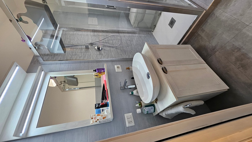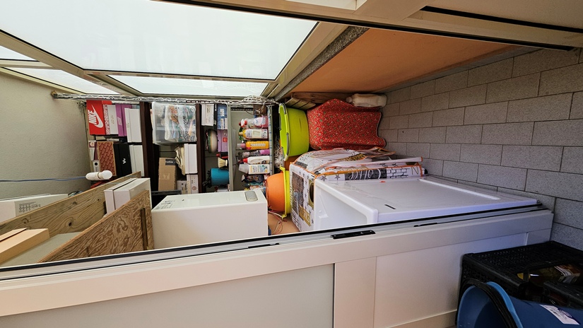 L'unità superiore presenta altezze che la rendono totalmente vivibile (attualmente cat. C/2 con possibilità di cambio d'uso in abitativo), ed è composta da un open space all'ingresso, due vani deposito, un ulteriore grande vano chiuso a vetri e terrazzo a livello panoramico con tettoia (15 m² circa).